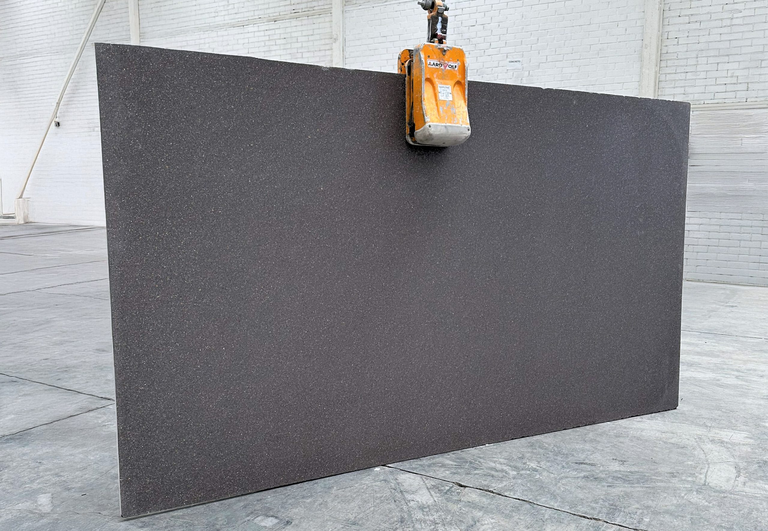 El terrazo Porfido de AGGLOTECH es una superficie de origen italiano con fondo oscuro y destellos minerales en tonos marrones y grises, que aportan una estética sobria, profunda y contemporánea.